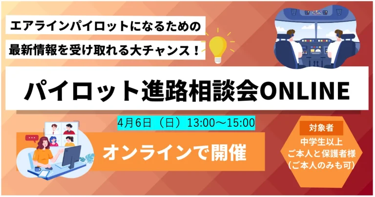 4/6(日)13:00〜、オンラインにて自社養成志望者と私大操縦進学希望者を対象とした、「パイロット進路説明会オンライン」を開催いたします!(Zoomを使用します) パイロットを目指し始めた方向けに、パイロットになるには … 続きを読む 4/6 パイロット進路説明会オンライン開催のお知らせ