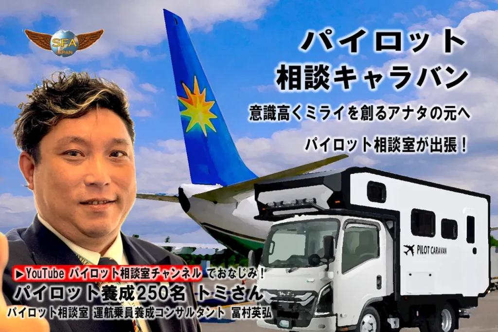パイロット相談キャラバンとは、パイロット相談室に所属の相談員、運航乗員養成コンサルタントの冨村をはじめとした、たくさんのパイロットを合格、そしてエアラインパイロットへと導いてきた相談員たちが、日本各地に出張して、パイロットだったり、意識高い職業人を目指すお若い方に直接お目にかかって、ご相談に応じさせていただく内容となっています。
