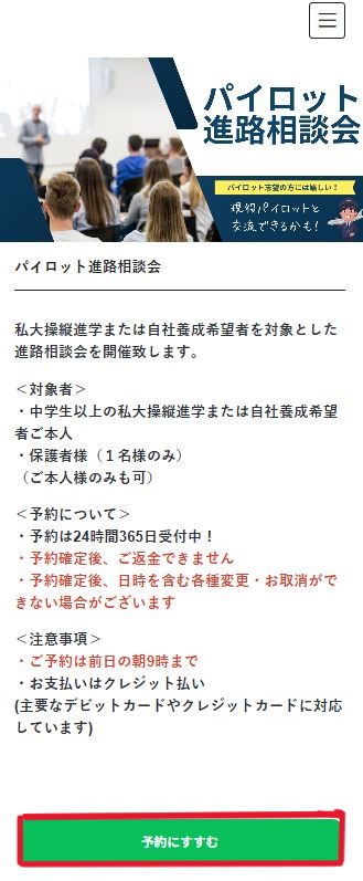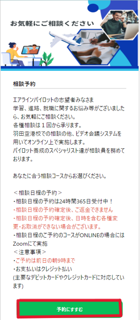 パイロット相談室 各種予約の紹介